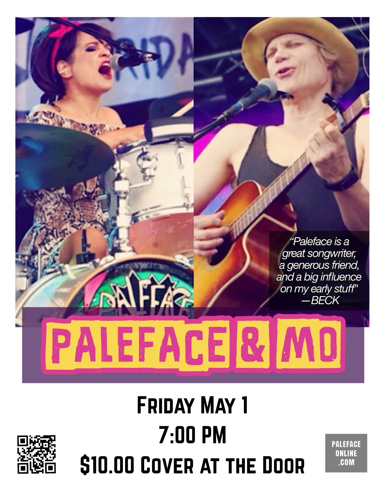 Paleface is a prolific American songwriter and recording artist currently performing as a dynamic acoustic-electric duo with his Puerto Rican drummer and partner, Mo.